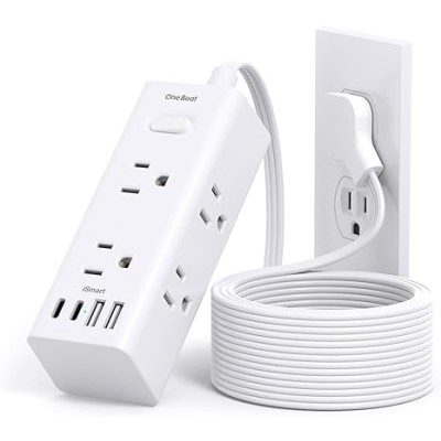One Beat 10Ft Extension Cord with Multiple Outlets,Flat Plug Power Strip Surge Protector with 10 Ft Long Cord
